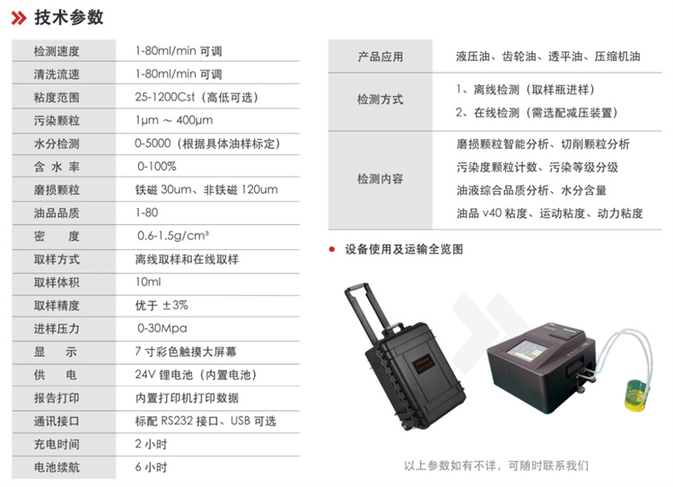 首先,它的檢測范圍在1~400μ,檢測速度通常在1~80ml/min(可調(diào)),最 大可支持1200cst高粘度油液的取樣檢測,在精度上達(dá)到了相當(dāng)高的水平。
