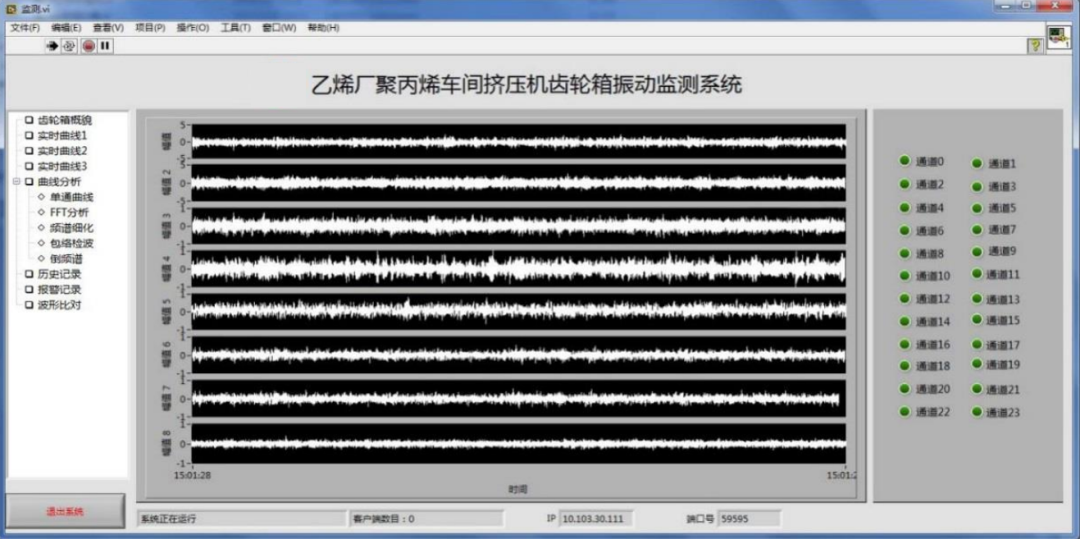 此方案實(shí)現(xiàn)了在線采集數(shù)據(jù)的多通道實(shí)時顯示及相應(yīng)的分析處理功能,完成了整個在線采集系統(tǒng)的接口設(shè)計(jì)和軟硬件系統(tǒng)的搭建。