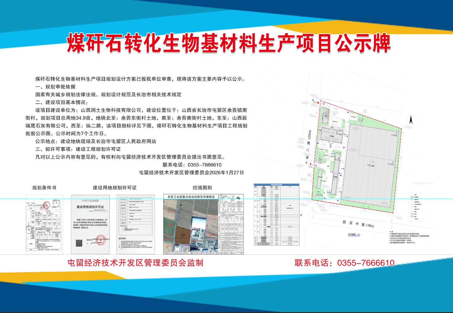 山西潤(rùn)土生物科技有限公司新建煤矸石轉(zhuǎn)化生物基材料生產(chǎn)項(xiàng)目,該項(xiàng)目建設(shè)位置于山西省長(zhǎng)治市屯留區(qū)余吾鎮(zhèn)南街村,東側(cè)為辰瑞晟石灰有限公司,西側(cè)為縱二路,南側(cè)為余吾鎮(zhèn)南街村土地,北側(cè)為余吾鎮(zhèn)南街村土地。經(jīng)審查符合規(guī)劃要求,現(xiàn)予公示,公示時(shí)間為7個(gè)工作日。如有異議,可向我單位行政審批服務(wù)中心反映。