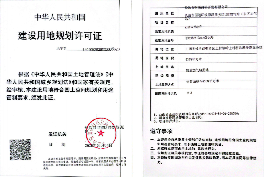 根據有關規定,現對長治市國道環線漳澤服務區LNG加氣站(東區加氣站)用地規劃批后公開,具體內容如下: