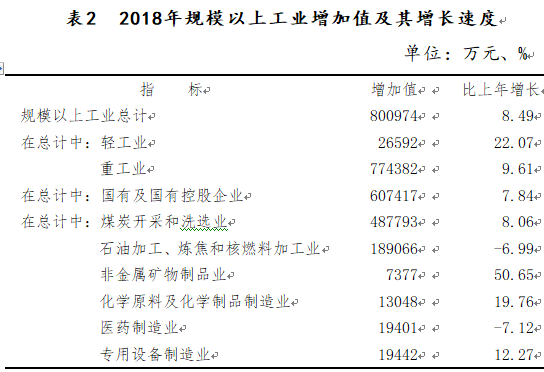 年末全區規模以上工業企業35家。全年規模以上工業增加值800974萬元,增長8.49%。其中,輕工業增加值26592萬元,增長22.07%;重工業增加值774382萬元,增長9.61%。工業產品銷售率94.97%,下降4.74%。