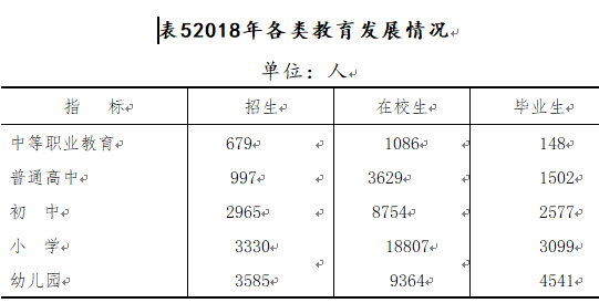 年末全區各級各類學校共209所。其中,完全中學1所,高級中學一所,職業中學1所,普通初中8所(其中民辦1所),九年一貫制學校1所,十二年一貫制學校1所(民辦),教師進修學校1所,小學102所(其中教學點68所),獨立設置幼兒園93所(其中民辦幼兒園49所、企辦幼兒園1所)。全區在校學生41640人(其中在園幼兒9364人),教職工(含幼兒園)3410人,其中專任教師2771人,教師進修學校27人,電教館26人,教育科技局89人。